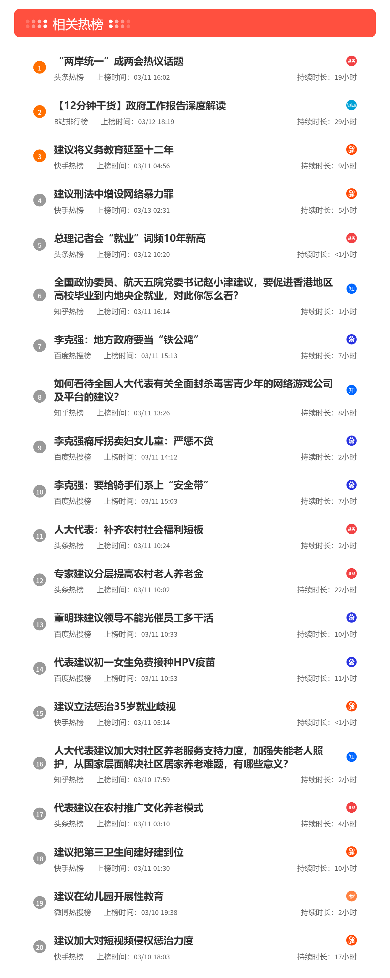 “全国两会”热榜舆情观察报告(3.3-3.13)
