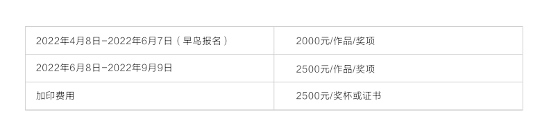 参赛者可通过官方网站在线申请报奖,同一奖项中可以提报多个作品,同一作品也可以报名多个奖项(作品内容须与奖项定位相符合),费用根据报名数量叠加。