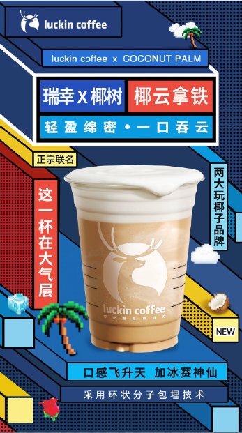 这是品牌34年来的第一次联名,与瑞幸咖啡合作推出新品“椰云拿铁”。