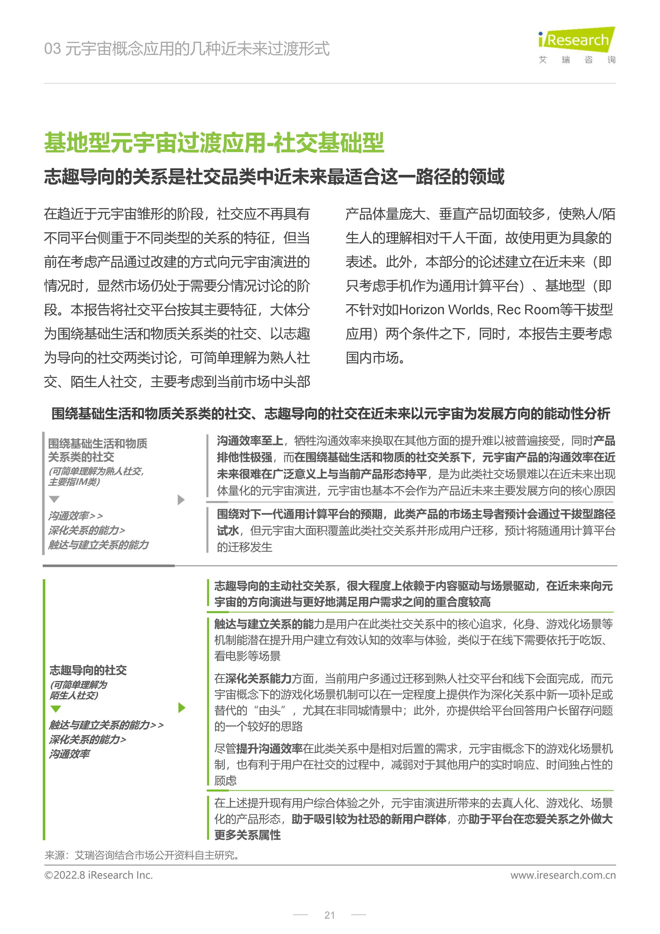 3、尝试对元宇宙概念应用的几种近未来过渡形式进行归纳与分析(尤其是在近未来具有较强的成长为相对完整且独立的元宇宙平台雏形的潜力的过渡形式),对应用向元宇宙平台演进的适配性、方向和重点提供一种思路;