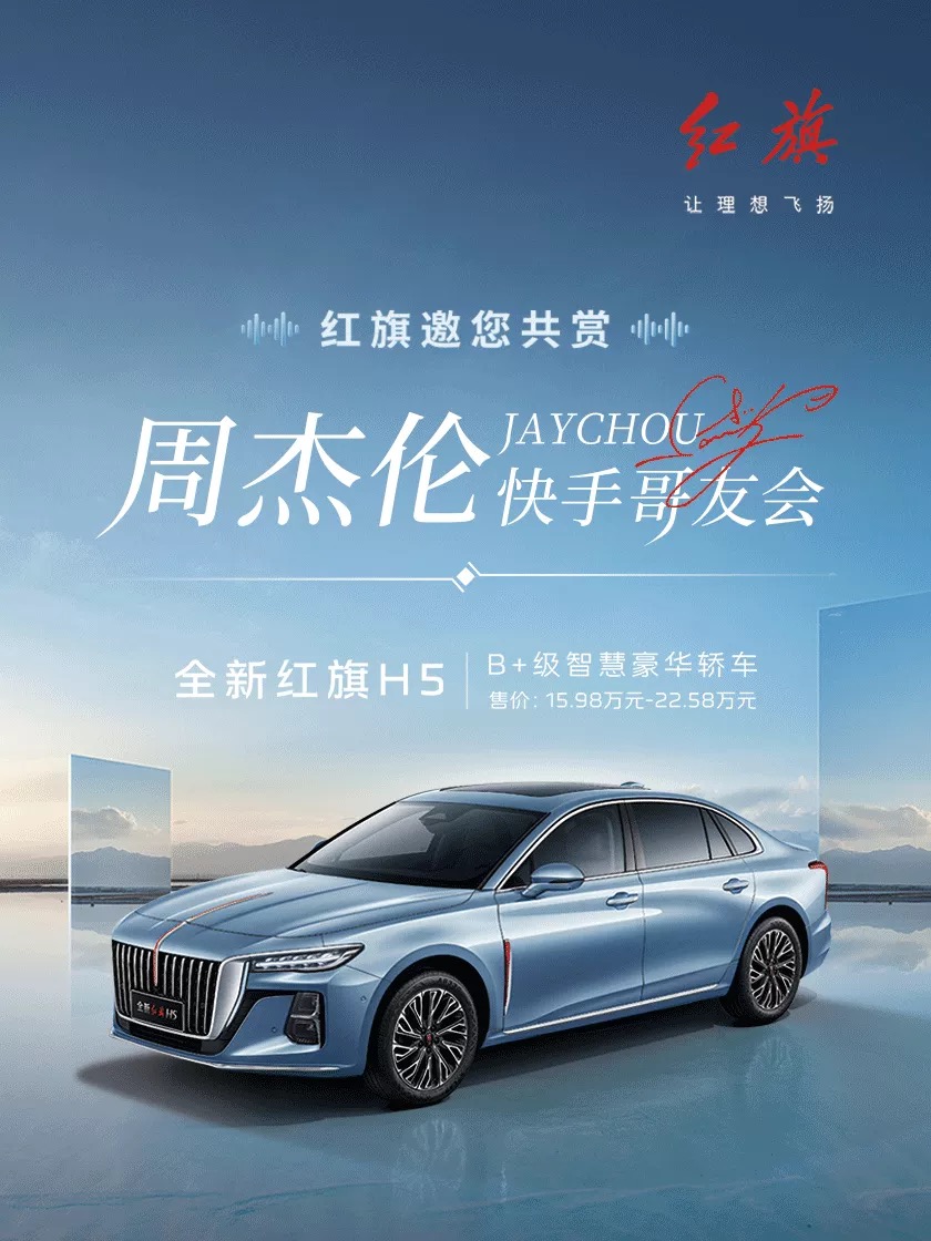 谁的青春里没有周杰伦,周杰伦是陪着80/90一代长大的人,而这一年龄圈层恰是当前全新红旗H5车型的主力消费人群,周杰伦强大的粉丝基础和辐射效应,也将为品牌转化潜在用户埋下种子。