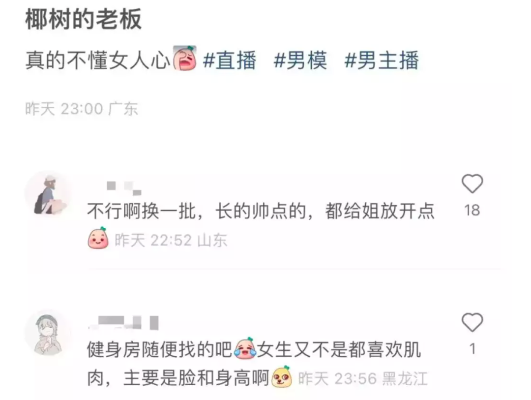 还有网友吐槽椰树直播间猛男跳舞,平等地物化每一个性别? (点击回顾)