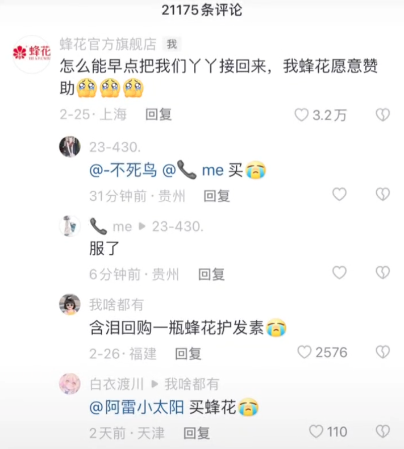 蜂花作为“第一个吃螃蟹”的品牌,感动了不少网友,引发了一波野性消费。