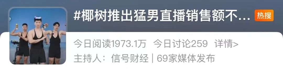 3月9日,一条#椰树推出猛男直播销售额不到1千#的话题上了热搜,这似乎有点打脸椰树抖音直播间追求美色营销出圈的做法……