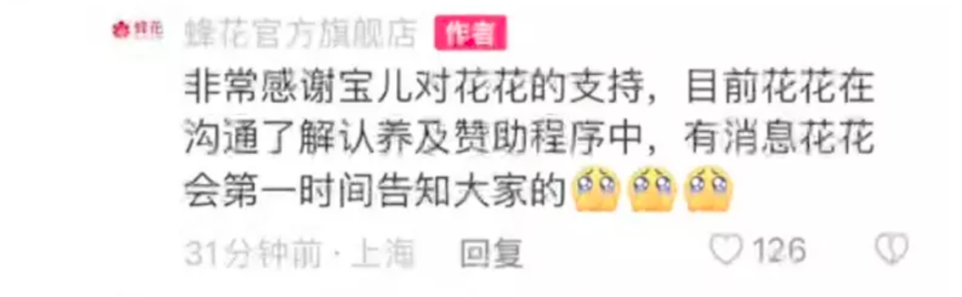 结果,“事事有回应”的蜂花,还真就回应了网友认养的呼声——呼吁理性消费的同时,表明会积极了解认养和赞助流程,如果可以认养,愿意认养。