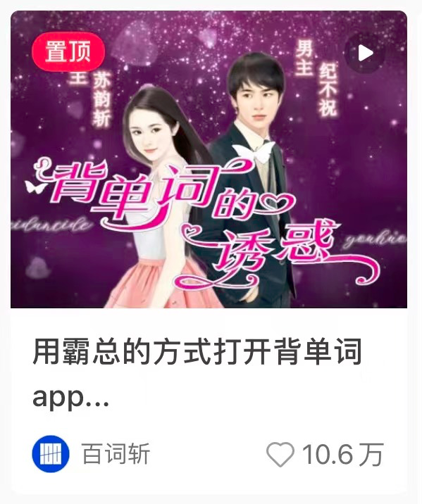 因为名字中有个“斩”字,联想到斩男人设,所以百词斩逐渐从中英文资料分享号,转变为“霸道斩妃”。