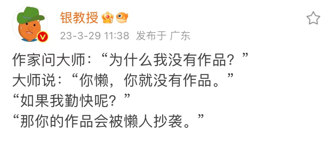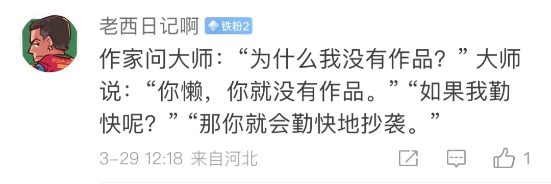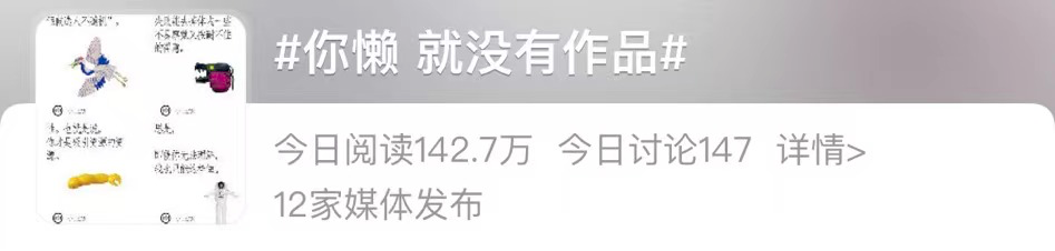 三月末,这段话末尾的一句#你懒 就没有作品#上了微博热搜。