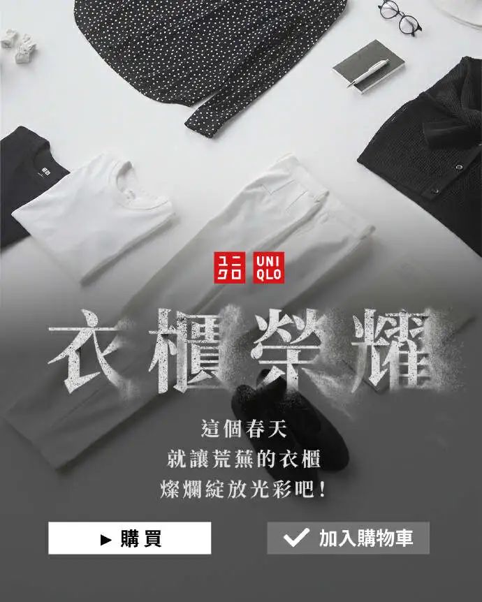 不少品牌在社交平台借势营销,其中特别好玩的是台湾优衣库的广告《衣柜荣耀》,黑暗中二风,好笑又上头~