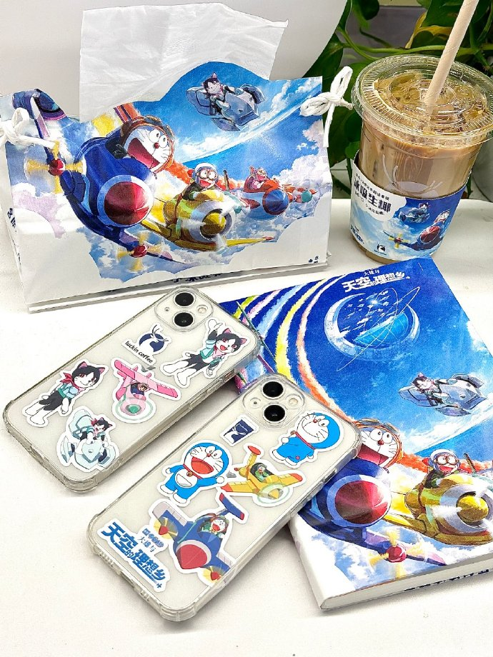 可以看到,杯套、纸袋等周边在设计上也融入了动画元素,蓝天、白云与彩虹交织,演绎梦幻色彩。