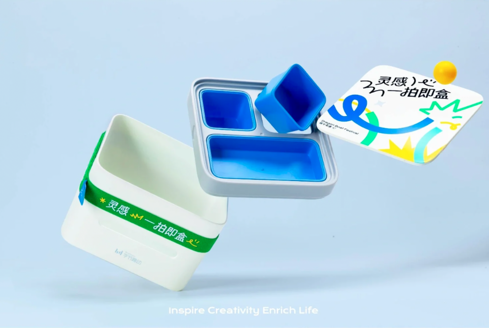 小影科技的礼盒围绕“分享”“绿色”设计,定制收纳袋可以折叠到手掌大小,便于携带。便当盒则是想要唤醒大家的童年记忆,在节日与朋友一起吃饭叙旧。