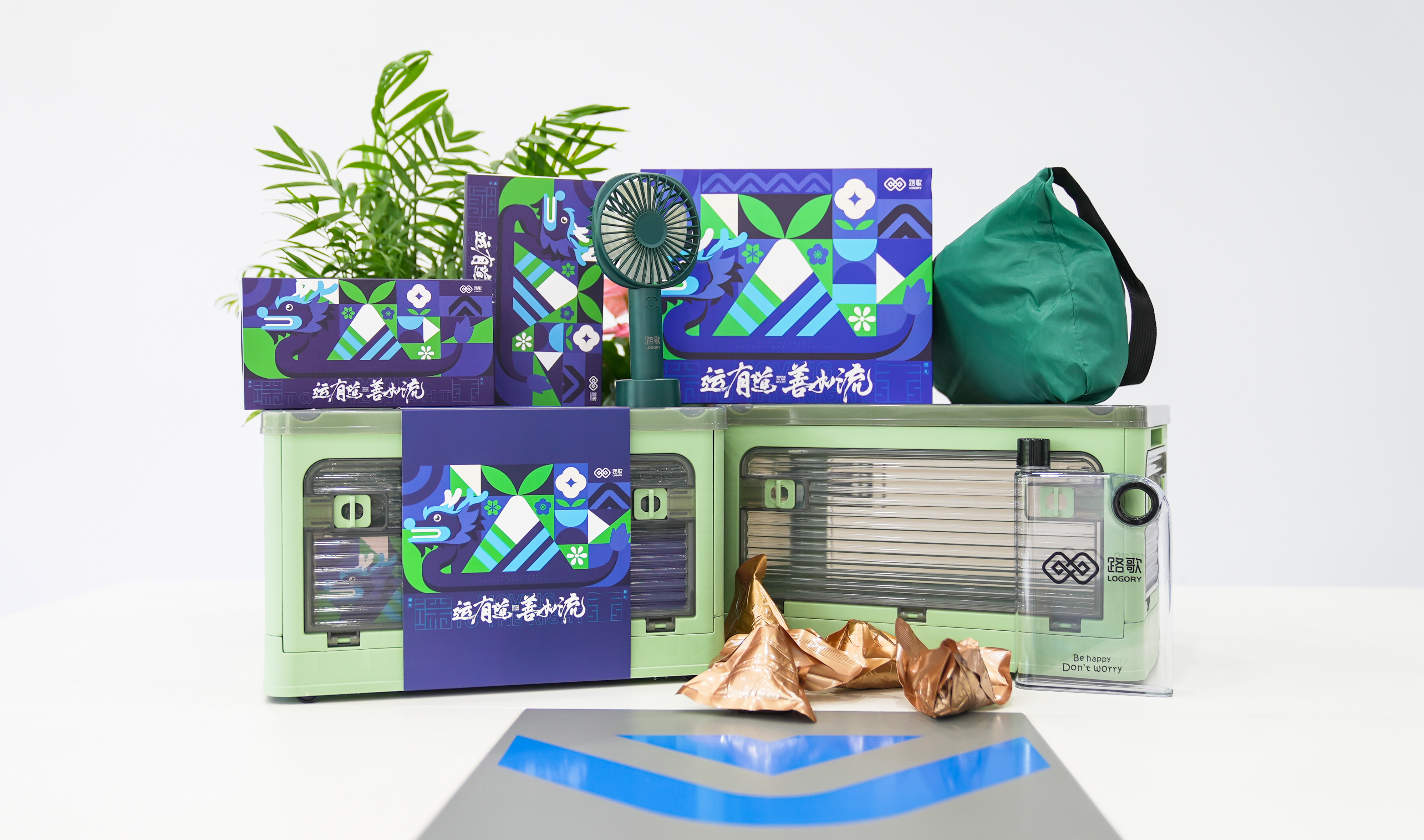 路歌礼盒整体色调是品牌色蓝色和端午的代表色绿色相结合,简约实用同时又不失精致的氛围感。初夏端午到来,路歌邀请收到礼盒的朋友一起粽享自然、抛开烦恼~