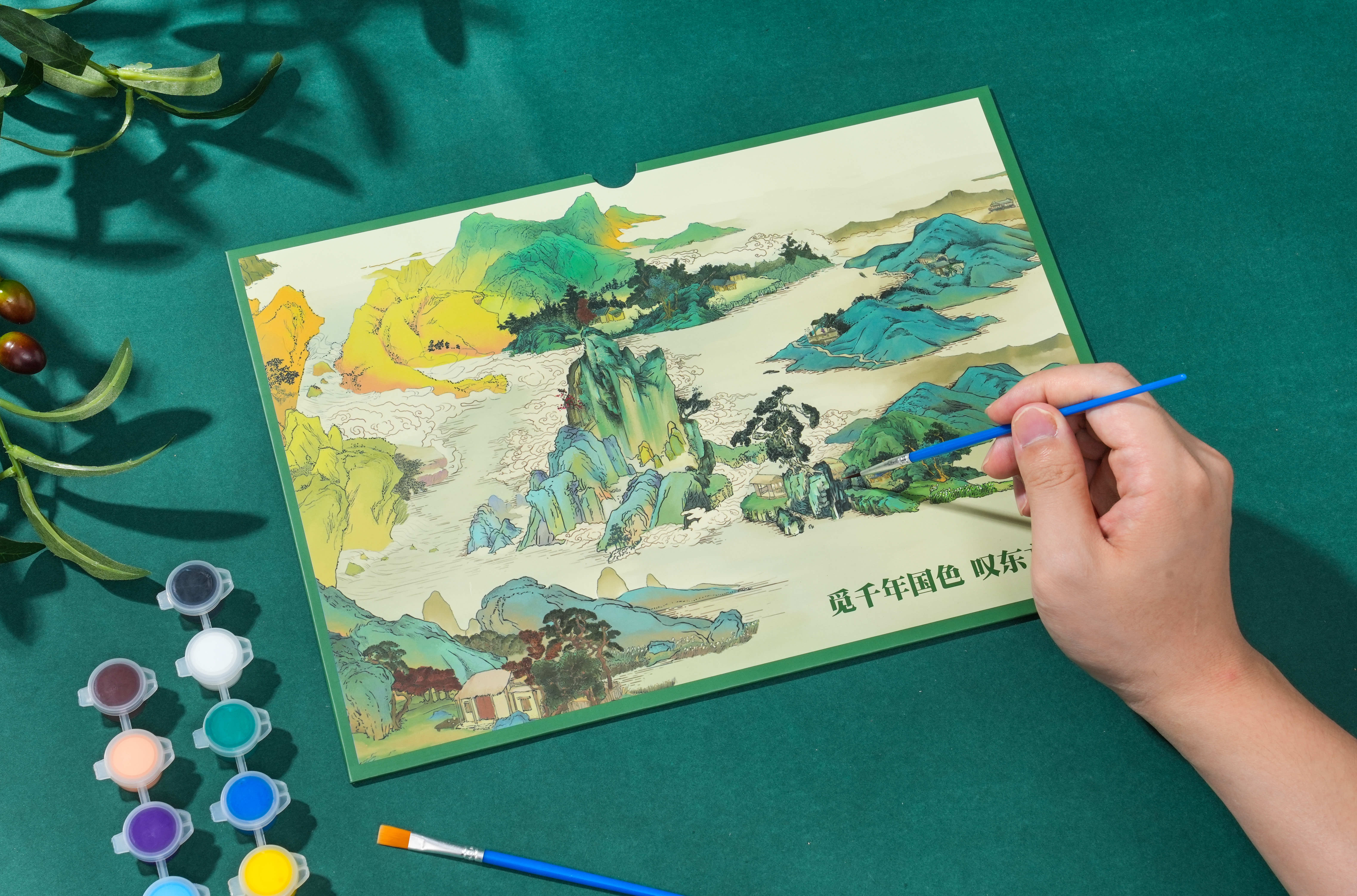 礼盒设计灵感取自于春晚节目《只此青绿》。国风手绘高端礼盒,磁吸双开门设计,兼具国学的大气风雅和细腻质感。