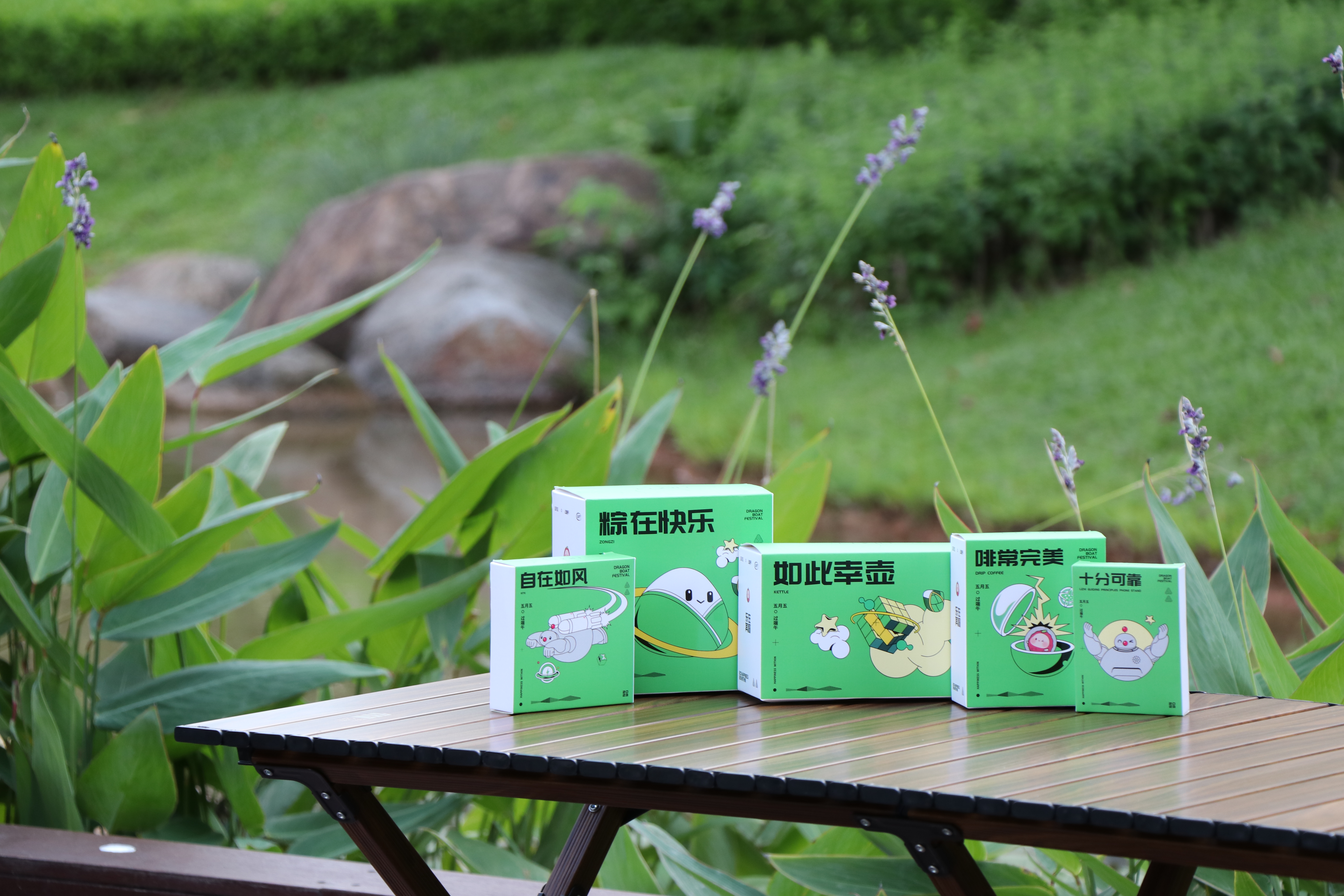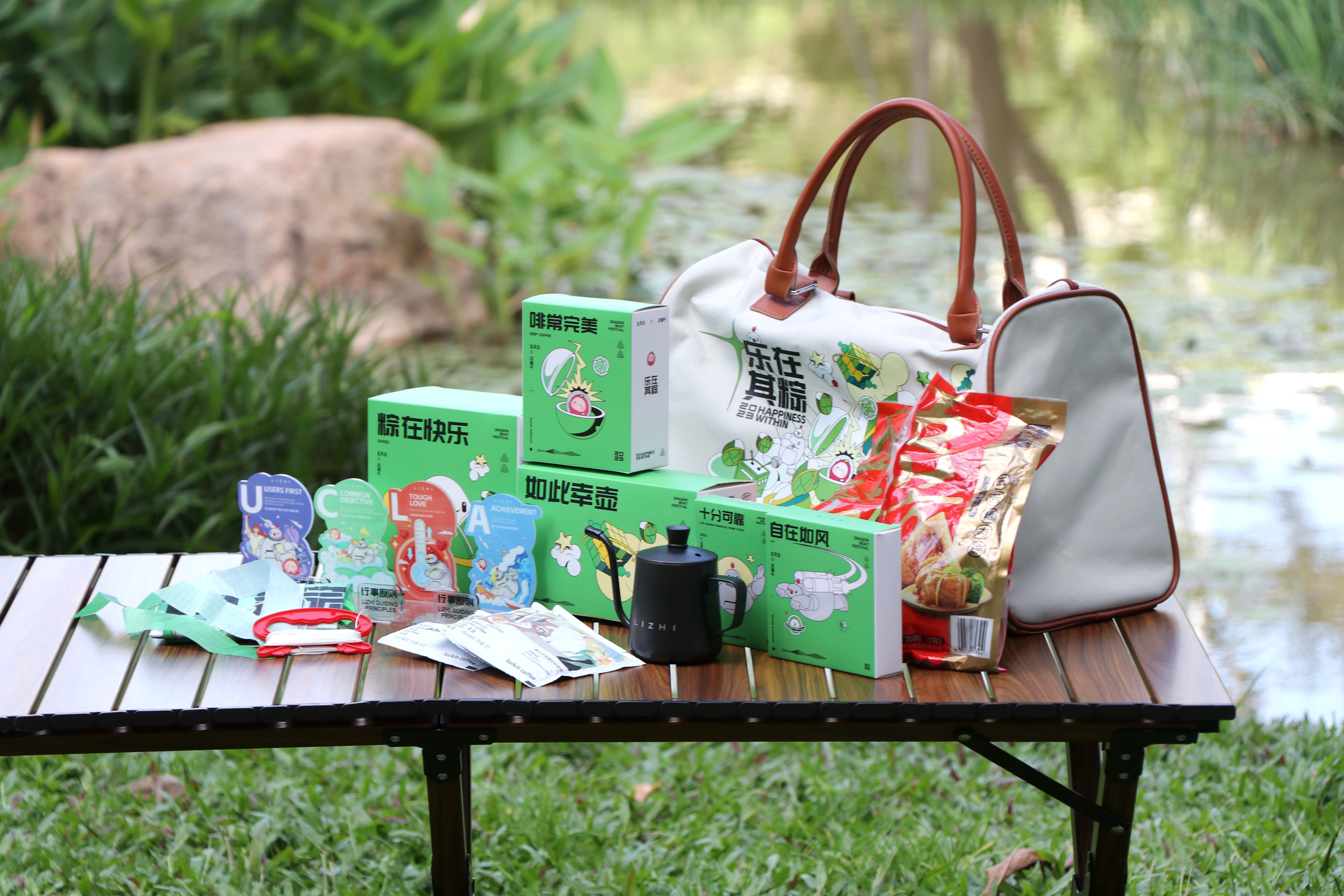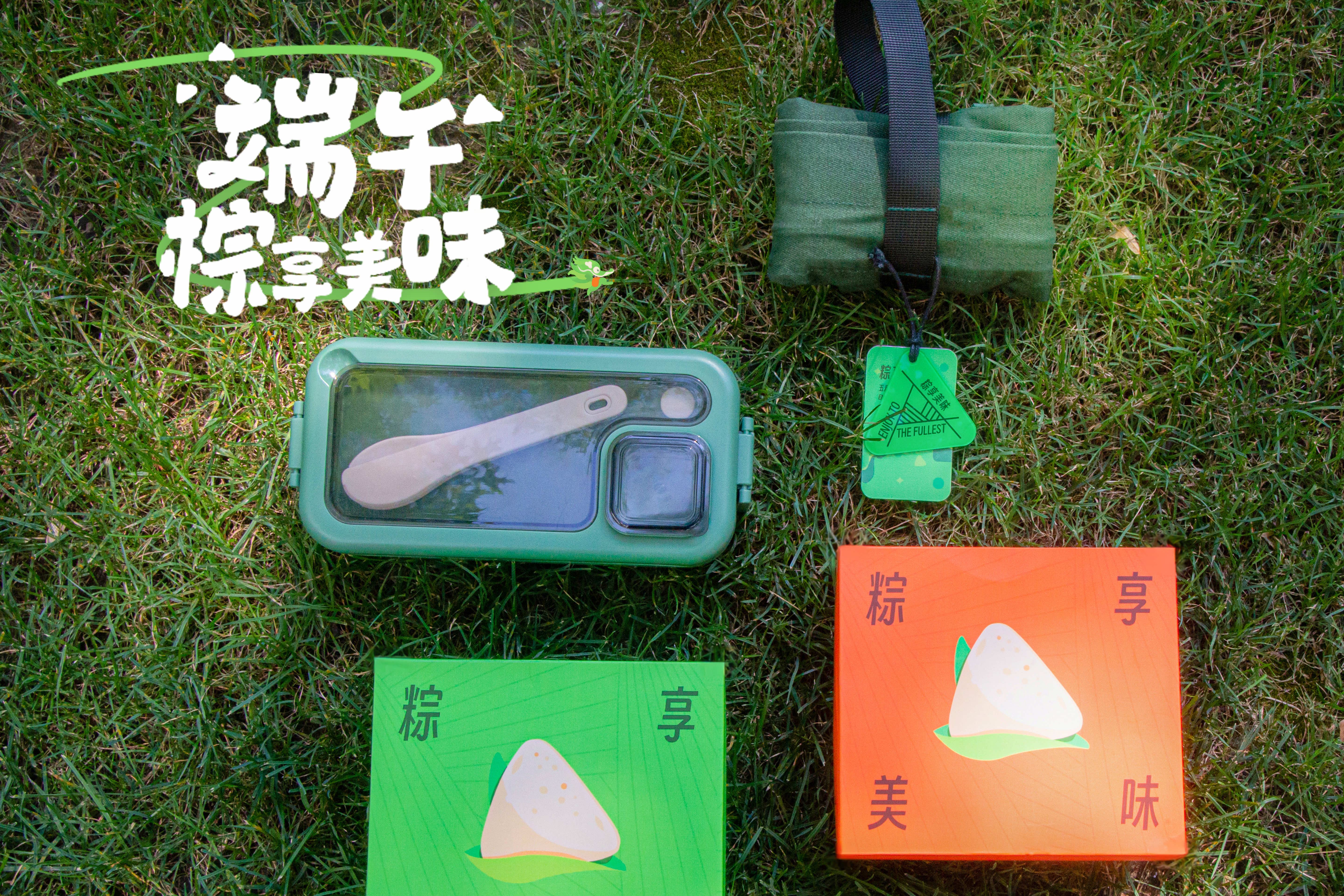 收纳箱(户外露营储物&餐露营桌)、便携野餐垫、可持续·咖啡渣露营杯、充气沙发、经典大枣粽&细沙粽。