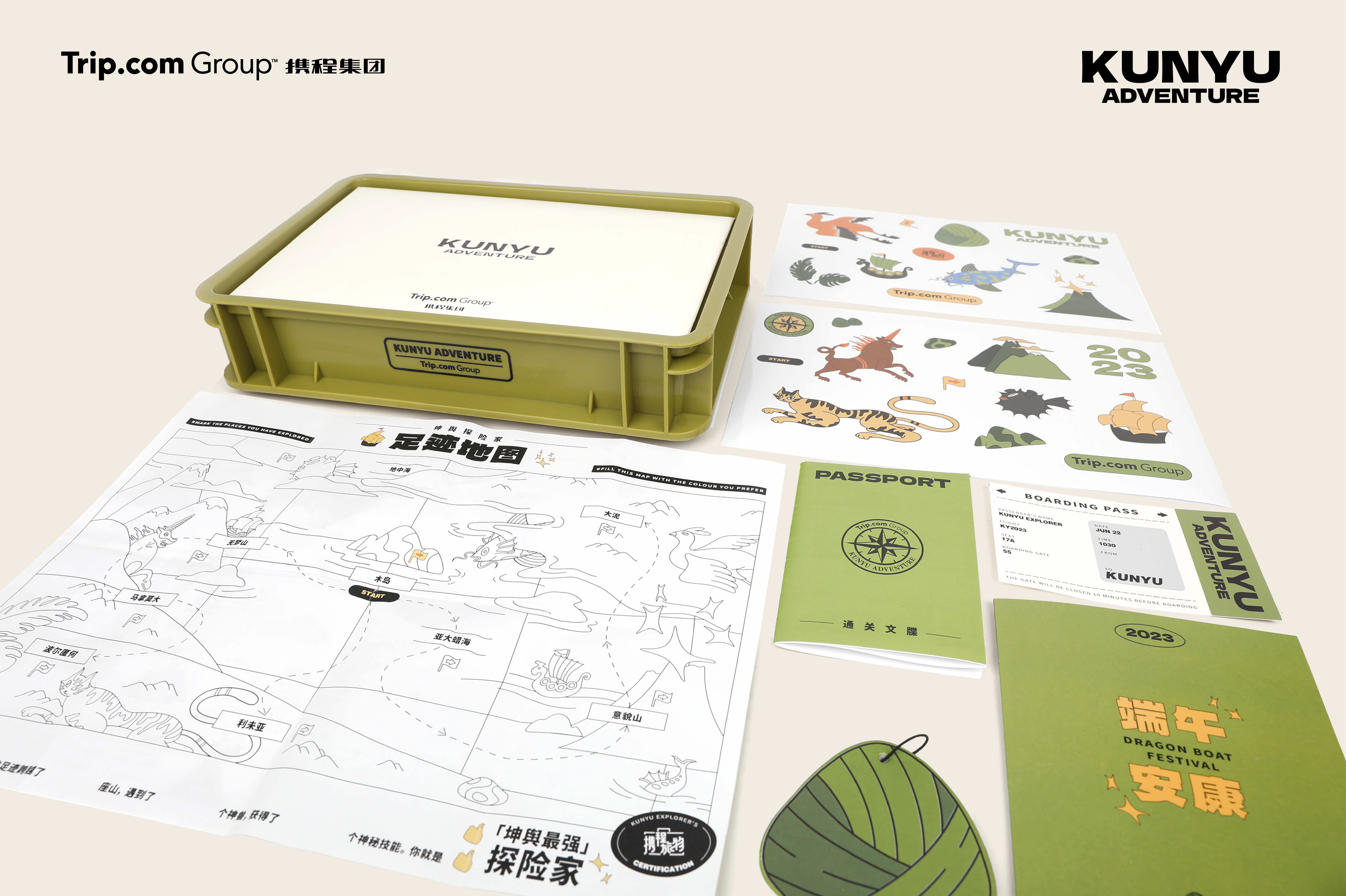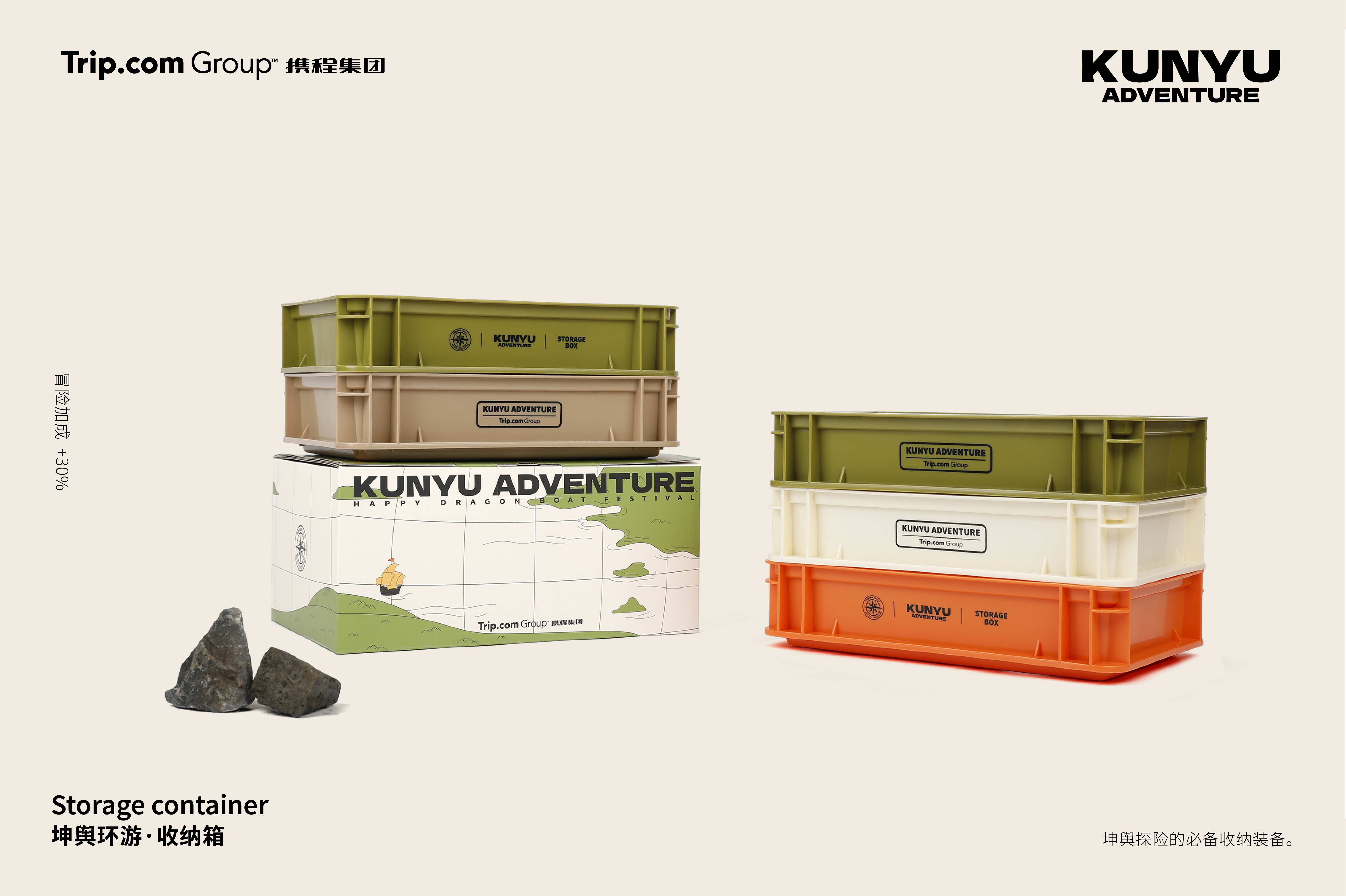 收纳箱、木岛酒壶、指南针、护照包、多功能背带、坤舆探险家桌游等。