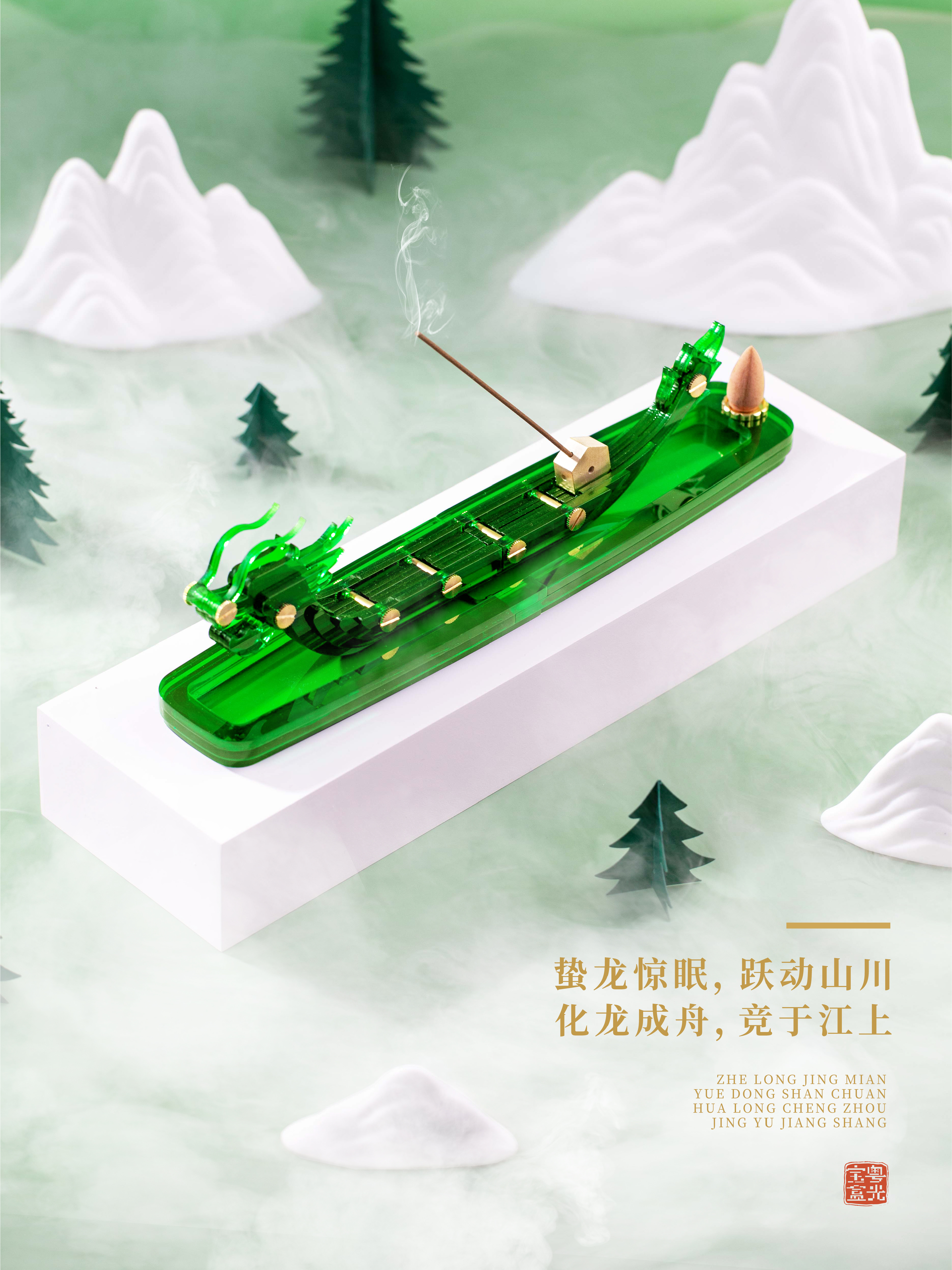 礼盒内的龙舟熏香摆件造型干净简约。DIY组装拆卸,方便收纳整理。