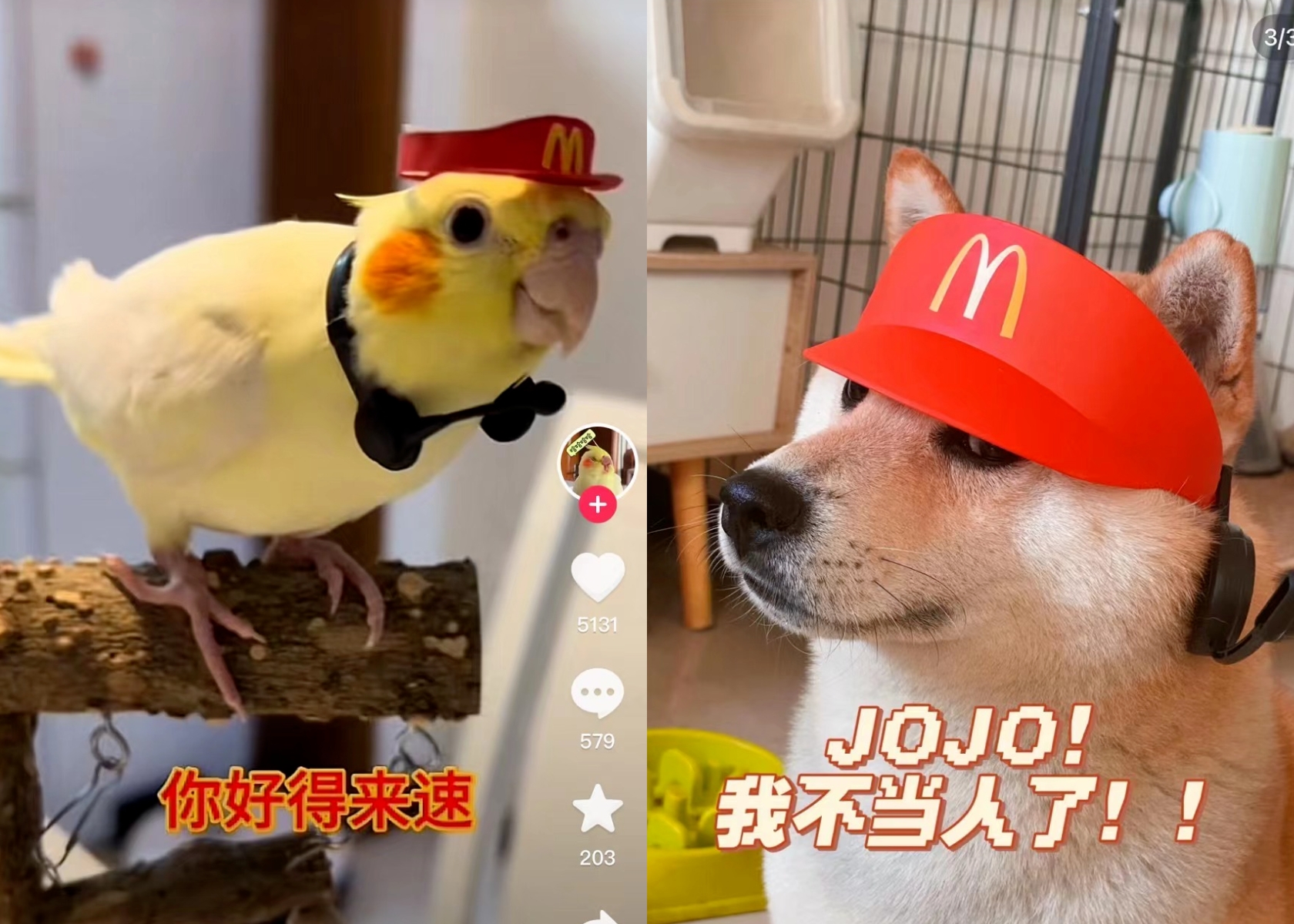 说的就是麦当劳新推出的过家家玩具。戴上小红帽,小狗小猫变身麦当劳打工崽,问你要吃点什么。