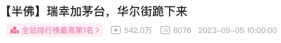 在网络声量中,红人@半佛仙人 制作的一条视频《瑞幸加茅台,华尔街跪下来》,标题有点搞笑有点夸张,不仅上了微博热搜,视频播放量还一度冲到了b站排行榜第一名。