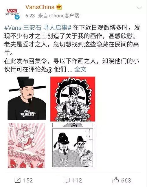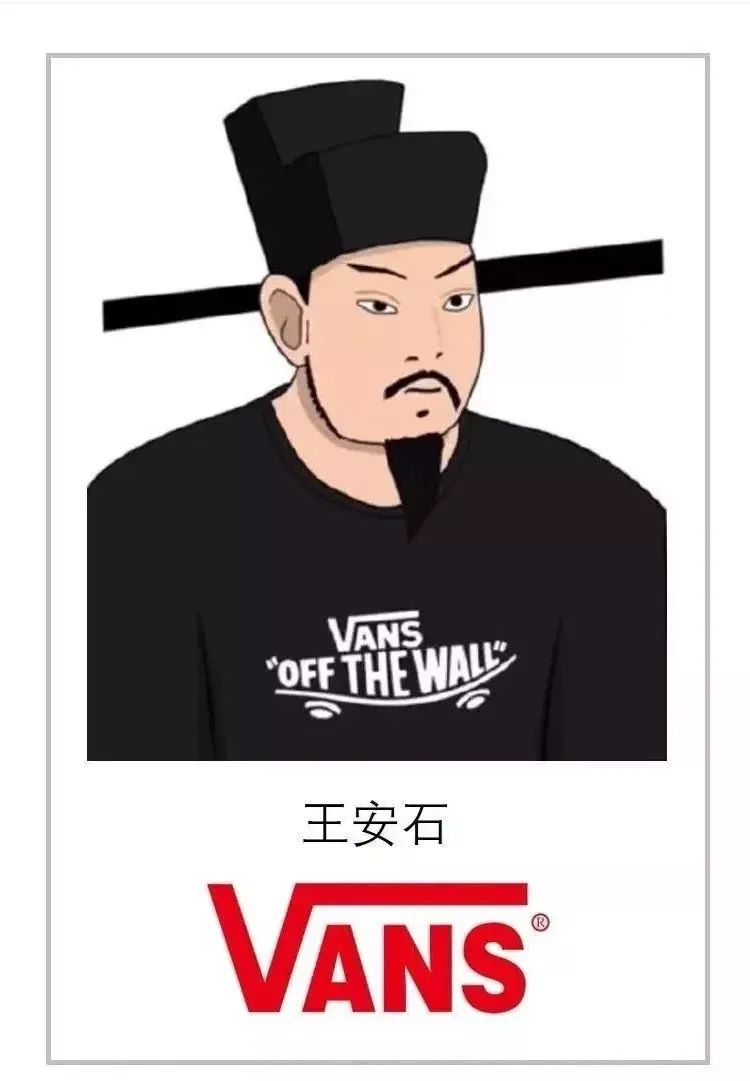 Vans还真的做过与王安石有关的创意广告,比如把品牌logo印在他的衣服上,还发起过二创活动。