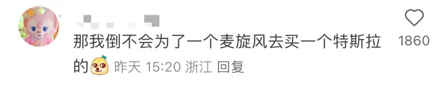 网友:那倒也不会为了麦旋风去买一个特斯拉(自信.jpg)