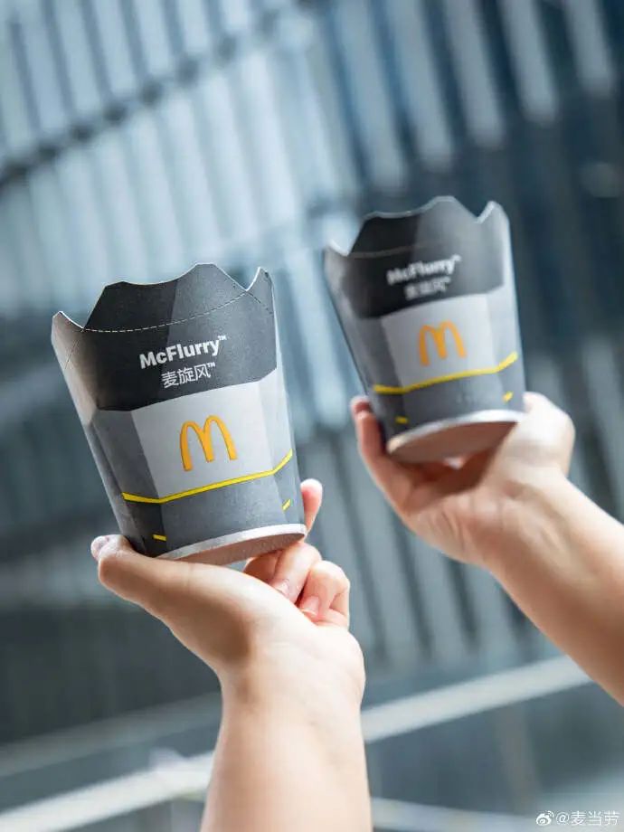 品牌联名产品是穿了新皮肤的麦旋风——纸杯变成了灰色赛博风,点缀以明亮黄色线条。