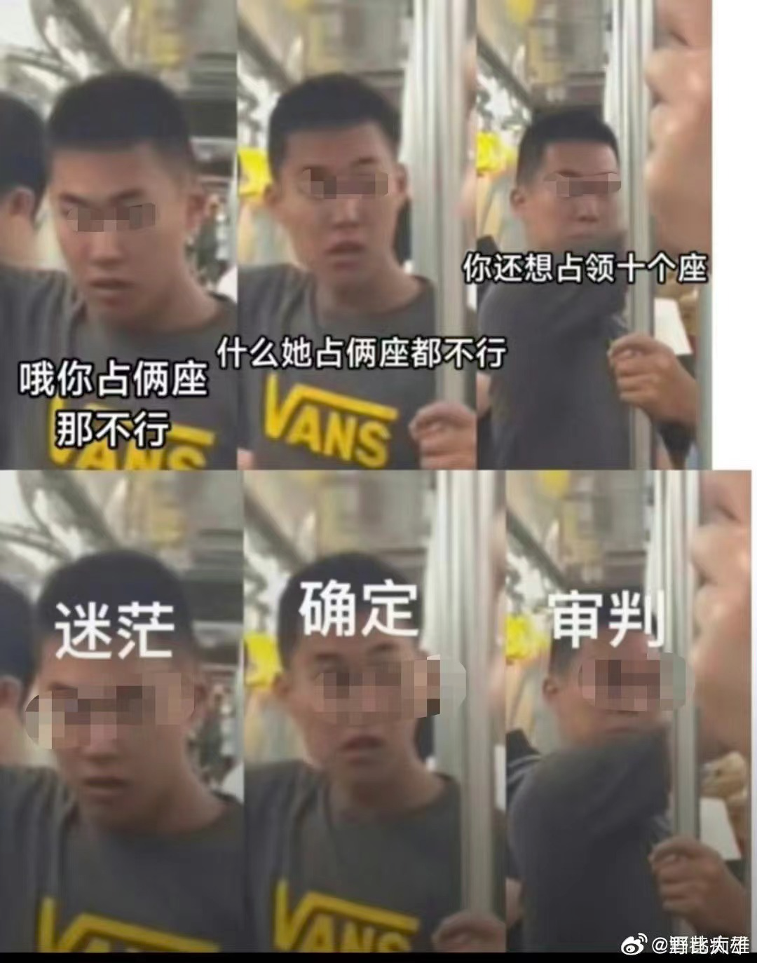 三位老人在争论地铁让座的问题,小伙站在一旁听他们说话。其中一位大爷突然来了句“要没人的话我占十个位置又怎样?”。小伙一听,立马锁定对象,给大爷来了一下。