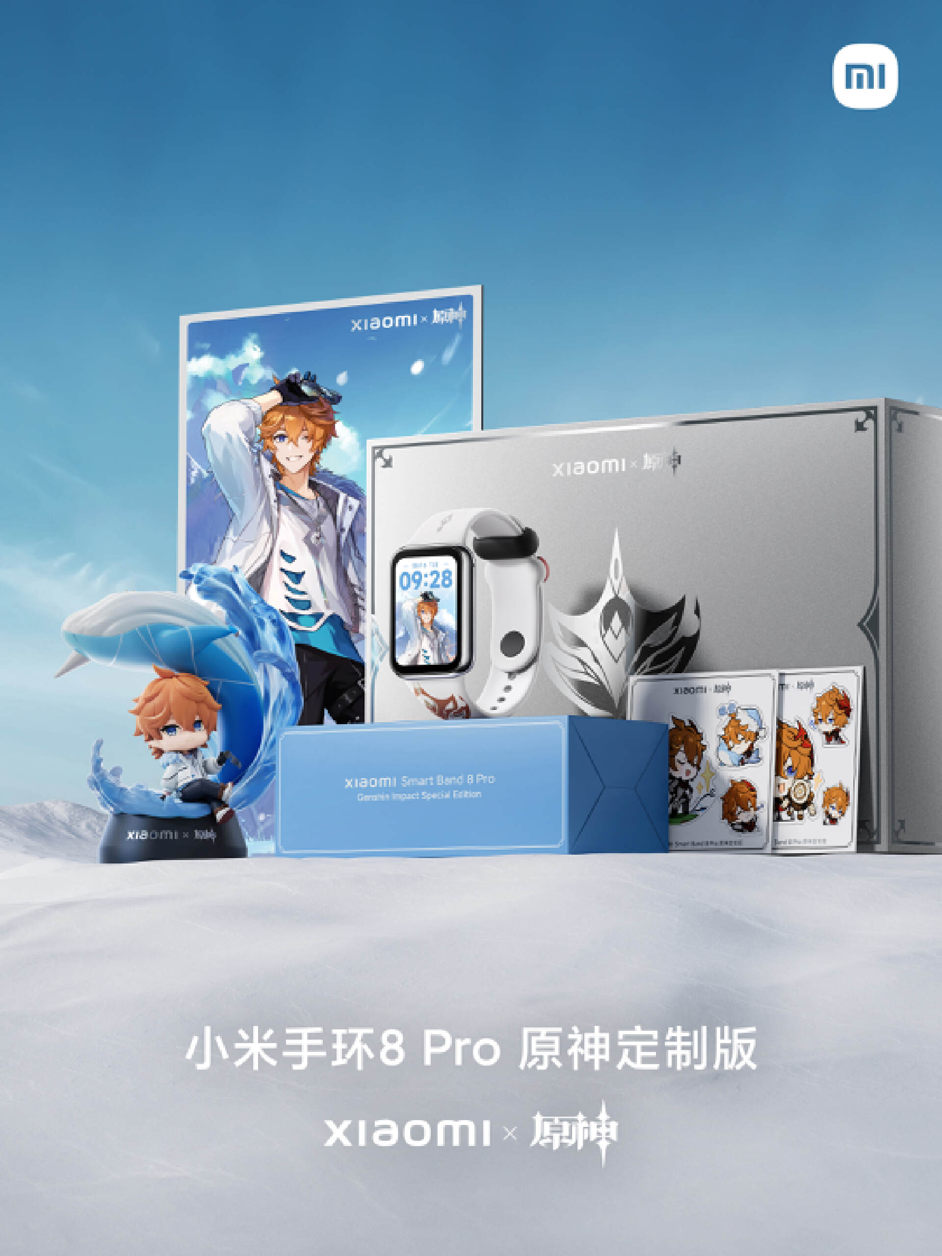 12月8日,小米官宣联名《原神》,推出小米手环8 Pro 原神定制版。手环屏幕上是定制版的动态表盘,人物来自游戏中的角色达达利亚,外号“公子”,腕带上印有角色的面具图案。