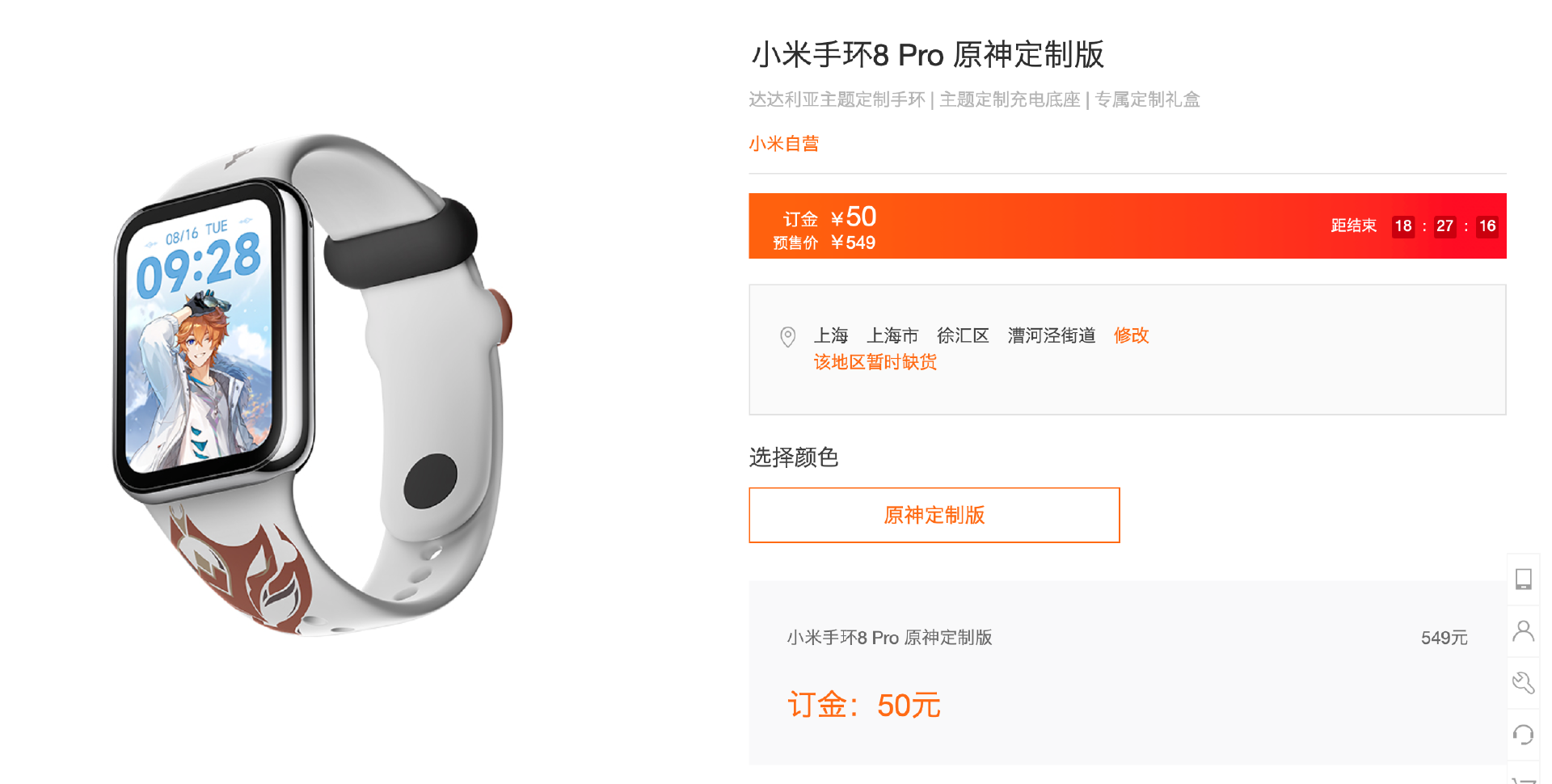 小米手环联名《原神》人气火爆