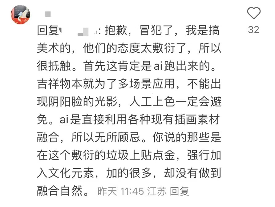 有网友表示,吉祥物设计得很有中华文化底蕴,但也有不少人质疑,吉祥物看着像使用AI作画的?