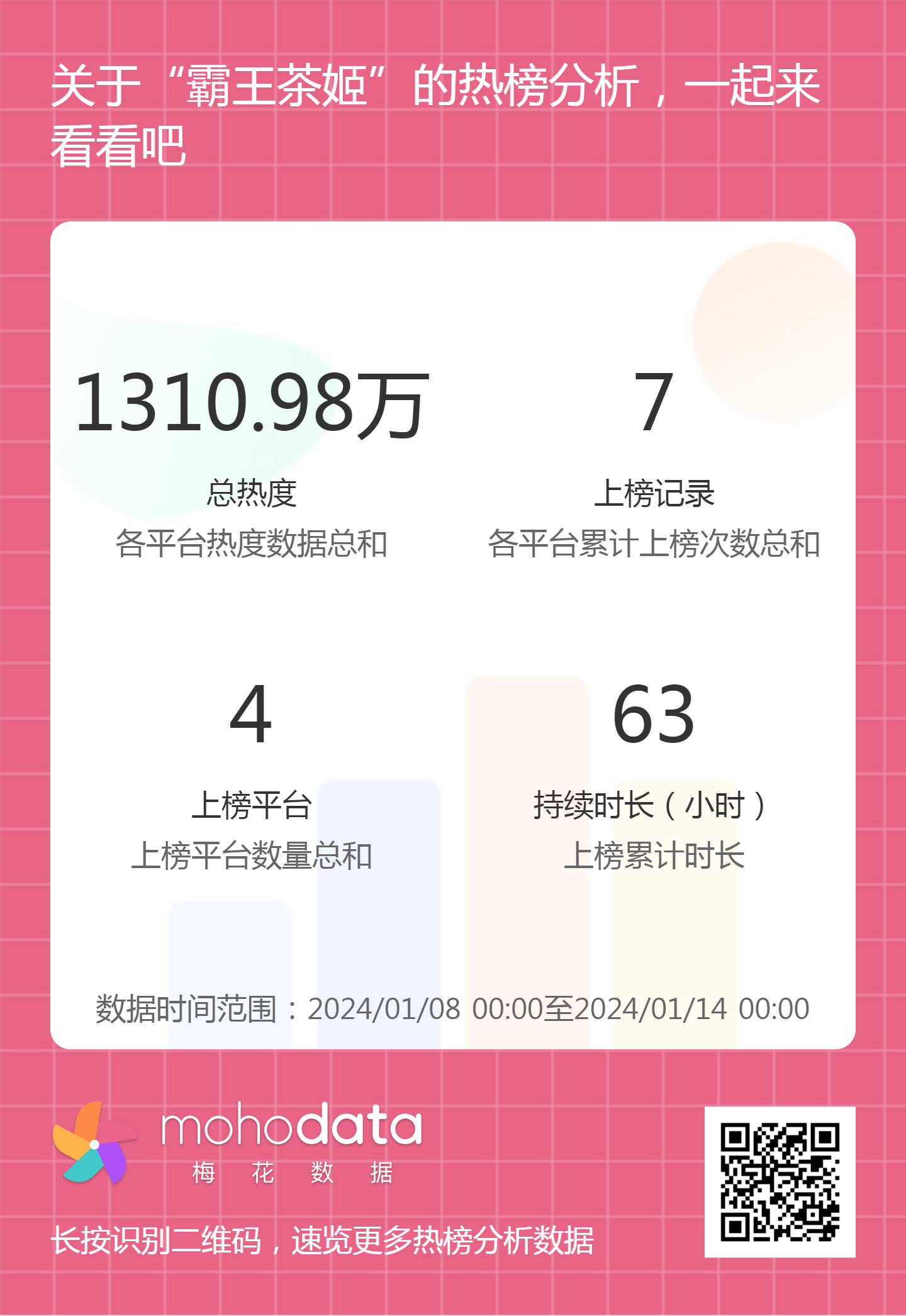 热搜方面,此次霸王茶姬事件相关热搜热度总计1310.98万,上榜记录7次,上榜平台4家,持续时长63小时。详情可扫描以下二维码查看。