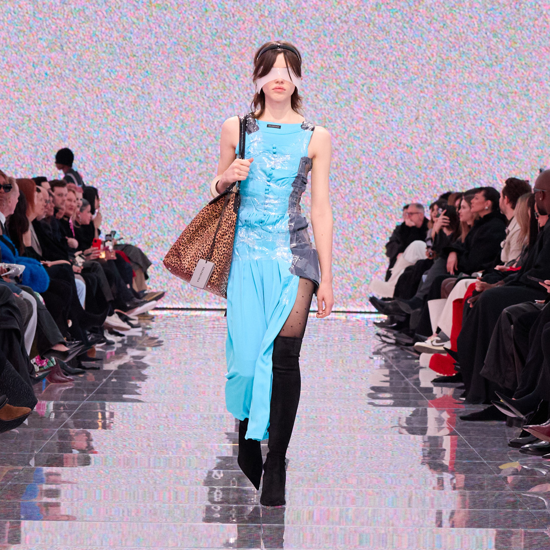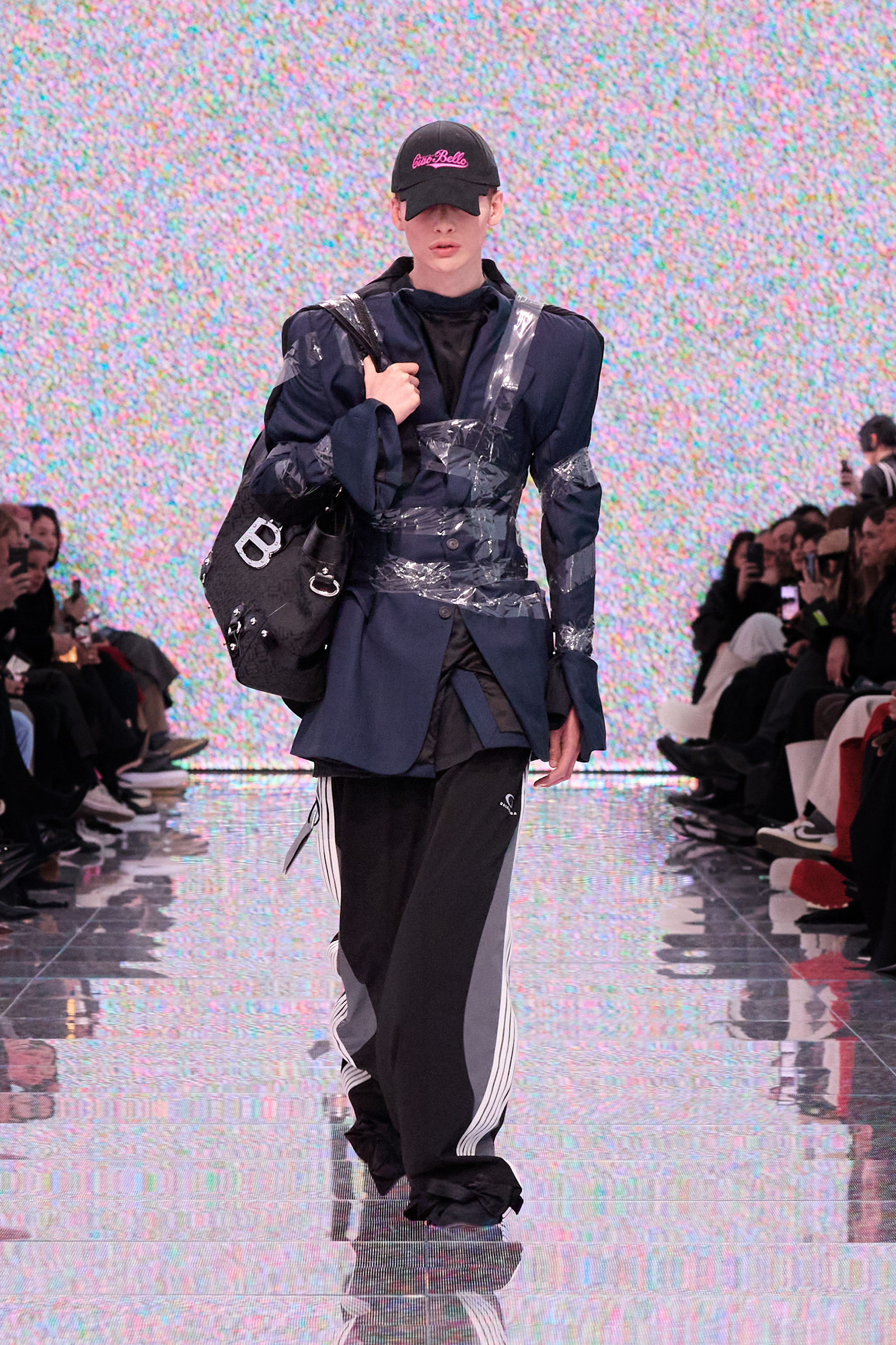 这个半透明胶带出现在最近巴黎世家2024冬季秀场上。