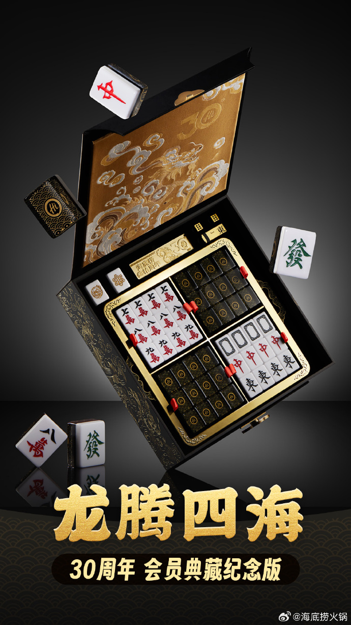 30周年会员专享纪念版,为大红配色,主打一个吉祥喜庆,以色彩博得眼球。麻将背面,还镶嵌海底捞logo;30周年会员典藏纪念版,黑金配色彰显大气,更融合四川非遗蜀锦工艺,将中国风味拉满。