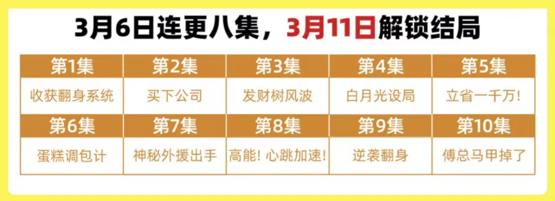 短剧总共十集,全部都可以免费看,因为每一集都植入了不同的广告内容~