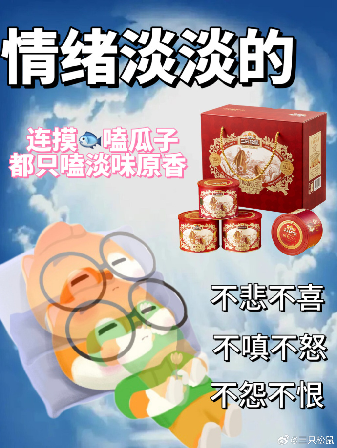 敏锐抓住“淡人”内核,三只松鼠推出“原香淡味国葵瓜子”——连摸鱼嗑瓜子,都只嗑淡味原香味,其所传递的生活态度和价值观,引发年轻人共鸣。