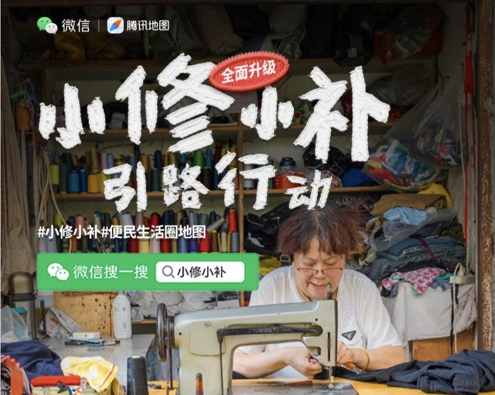 微信和腾讯地图,整合了全国的便民修补店,制作成“小修小补”指南,帮助大家解决修补问题,主打一个省钱又方便,居民幸福感直线UP。
