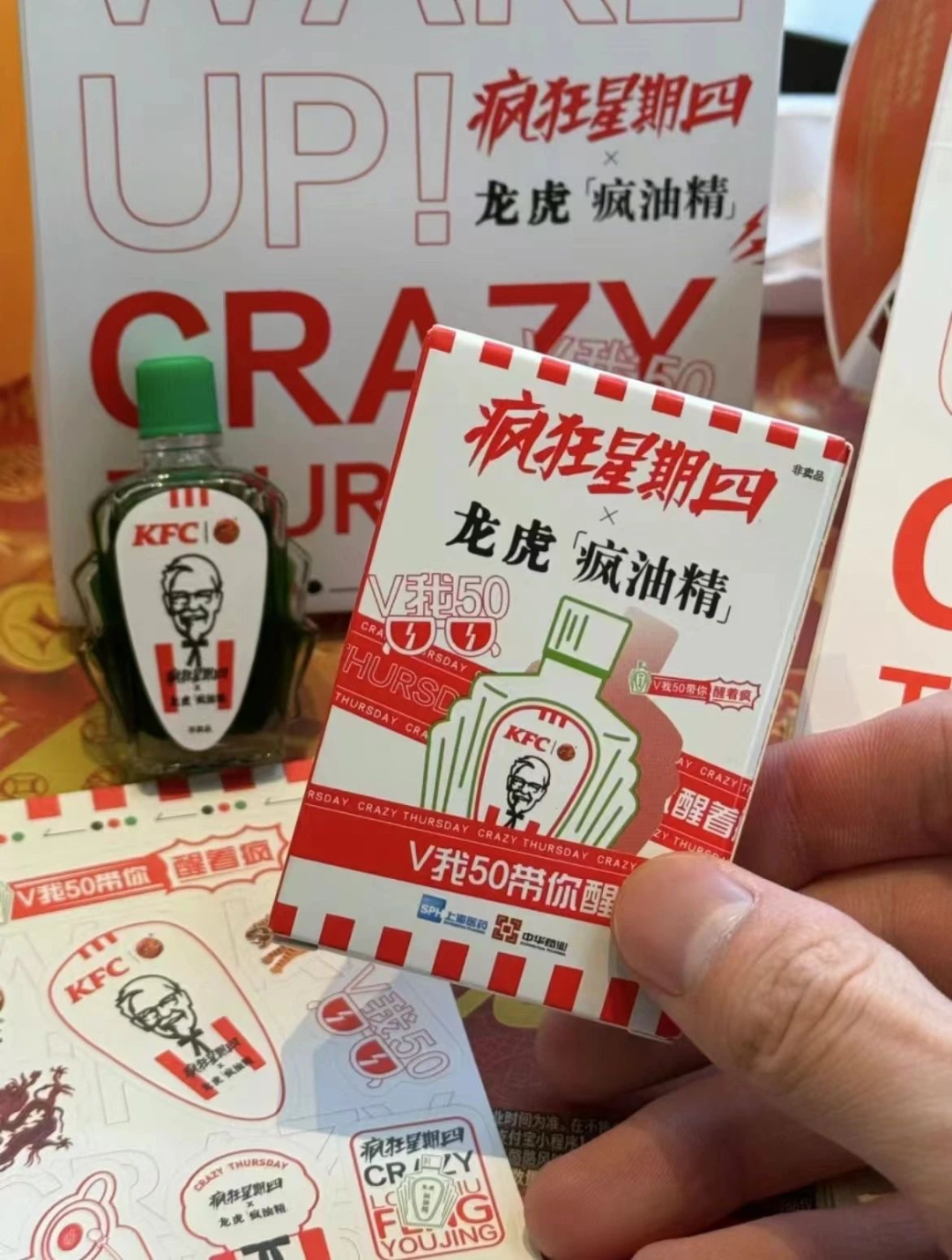 2024开年,肯德基也来发癫,还找到个“疯搭子”,与龙虎牌一起联动,推出了一款龙虎「疯油精」。