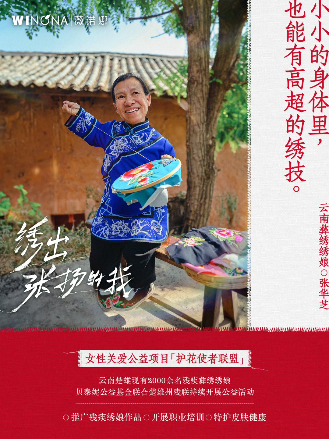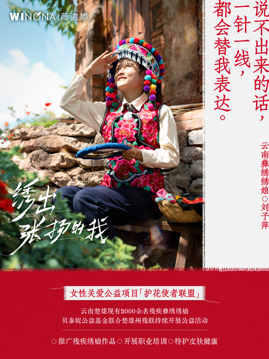 与此同时,借势5月19日全国助残日,品牌的女性关爱公益项目,还关注并帮助残疾 彝绣绣娘们推广作品、开展培训等。