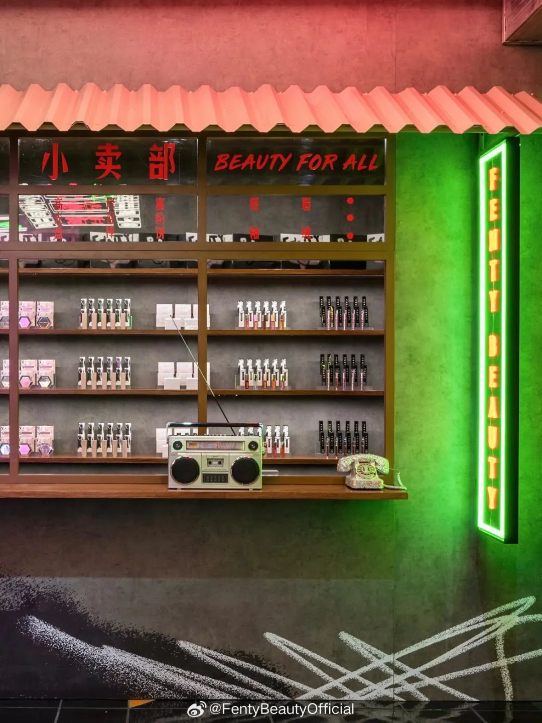 今年,Fenty Beauty官宣进入中国市场,除了原先的天猫国际海外旗舰店,品牌在抖音平台开设官方旗舰店,并且入驻了丝芙兰铺开线下渠道。Rihanna在快闪店活动之余,还穿一身红衣来到达人深夜徐老师、琦儿的抖音直播间,为品牌宣传造势。