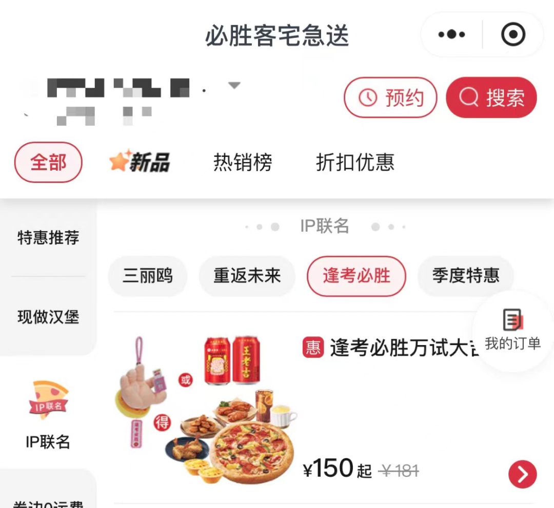 最近,“名字就很吉利”的必胜客与王老吉联名,推出新品“紫锭必胜披萨”,以及一款名为“逢考必胜好运拿捏”的毛绒挂件。消费者购买“逢考必胜万试大吉”套餐,即可获得两罐定制版“万试大吉”王老吉,或者挂件一只。