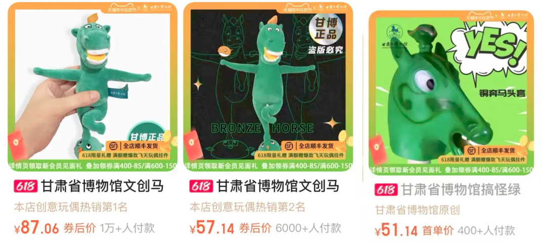 很多朋友可能有些印象,甘肃省博物馆就是那个“很会做文创”的博物馆,近几年出过爆款“马踏飞燕”毛绒玩具,绿马搞怪头套等,深受网友喜爱。