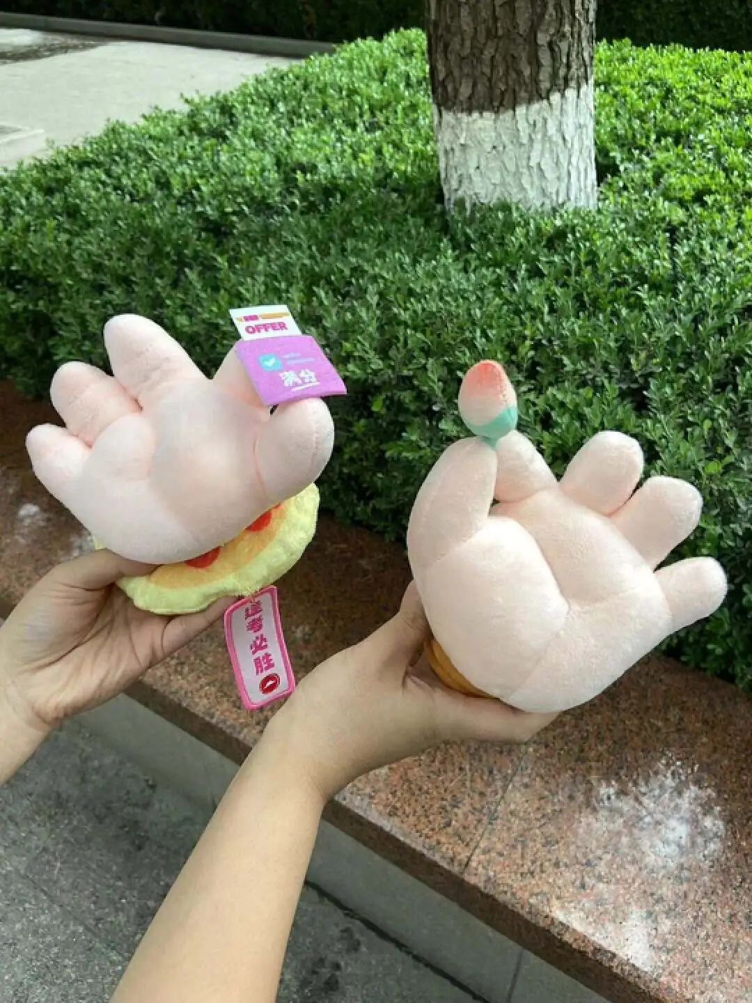 甘博的“拿捏”玩具是下图中右边这只,与左边必胜客的挂件比起来,这手势还真是差不多……