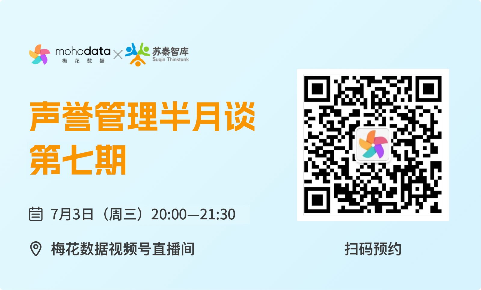 新的一周开始,上周我们举办了声誉管理半月谈第六期直播,感兴趣的朋友可进入梅花数据视频号(微信搜索:梅花数据视频号)查看直播回看和专家分析的精彩剪辑。