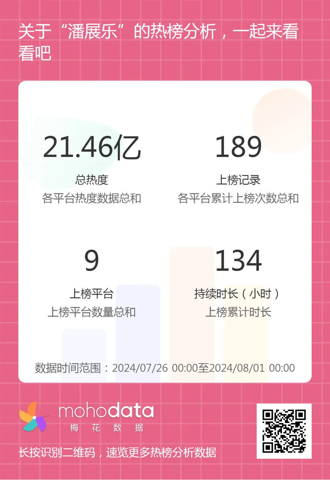 根据梅花数据舆情监测,7月26日-8月1日,巴黎奥运会中国男子100米自由泳选手“潘展乐”相关传播声量共计1,109,343条,其中微博端达到722,731条,客户端达到196,809条,视频端达到157,392条。除了潘展乐以46秒40的成绩夺冠并打破世界纪录以外,“查尔莫斯回应不理潘展乐”、“潘展乐2个月接受21次药检”等话题也被网友高度关注并频繁讨论。