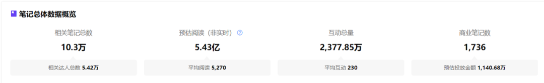 小红书10多万条笔记里,只有1736条是商业笔记,占比大概1%,覆盖了340个品牌,而且很多笔记都是简单的产品种草。