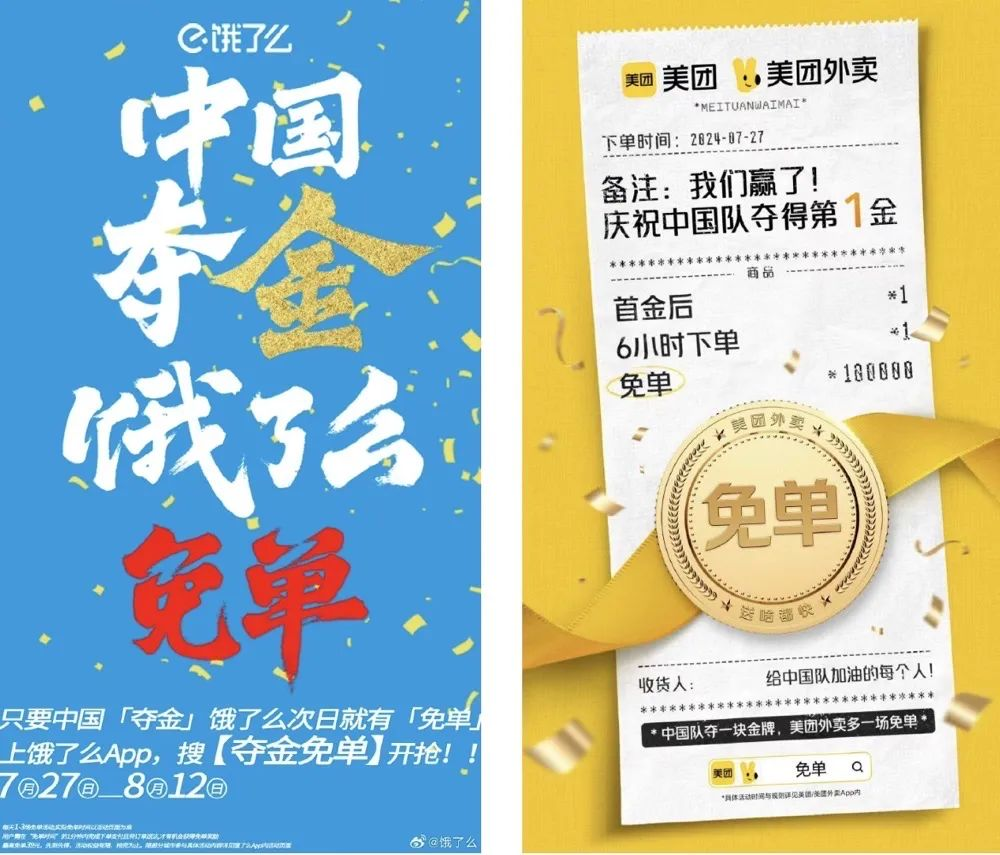 这个大家应该看得很多了,传统艺能比如中国队拿金牌了就打折免单。