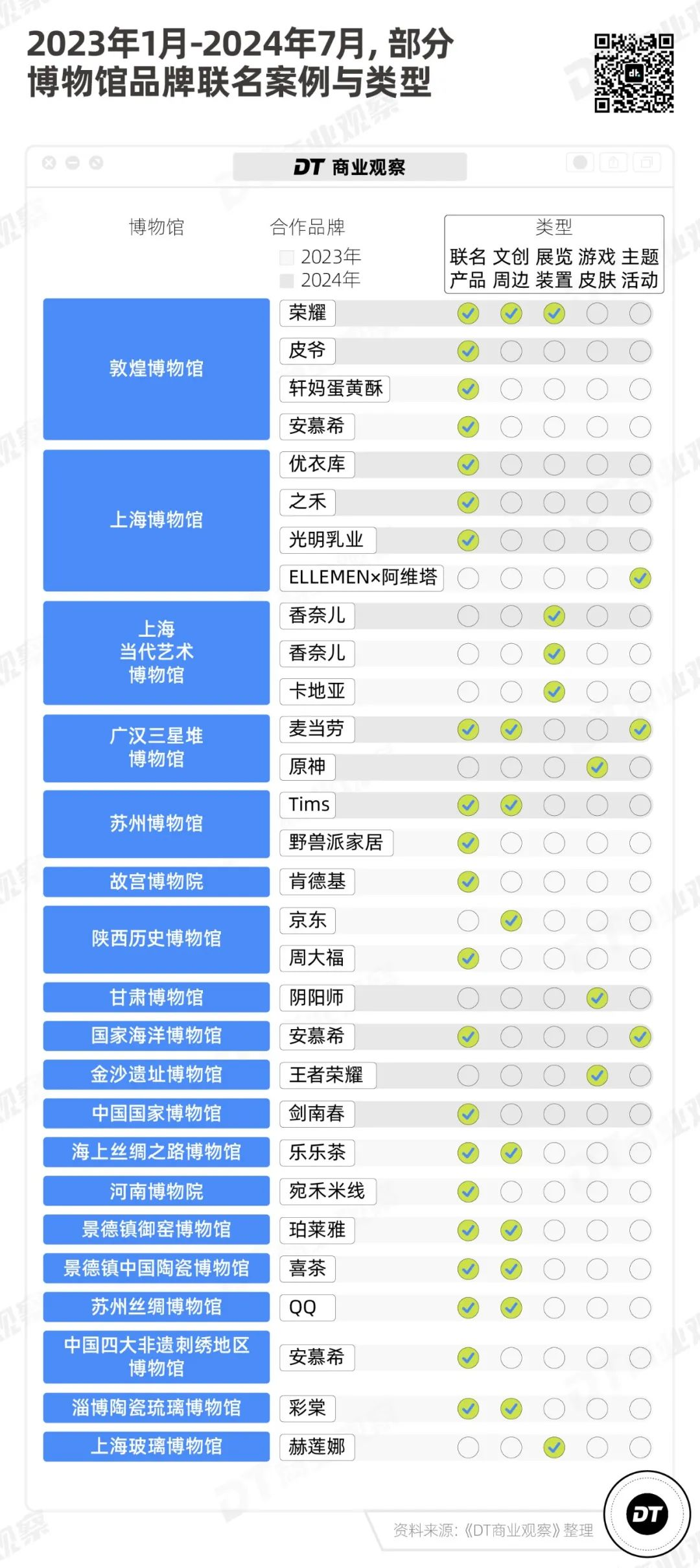 在商业联名层面,《DT商业观察》整理了近一年半博物馆品牌联名的案例,而后发现,博物馆联名主要分为几种类型——推出游戏定制皮肤、成为快消产品包装、制成服饰产品纹样、联合奢侈品办展等。