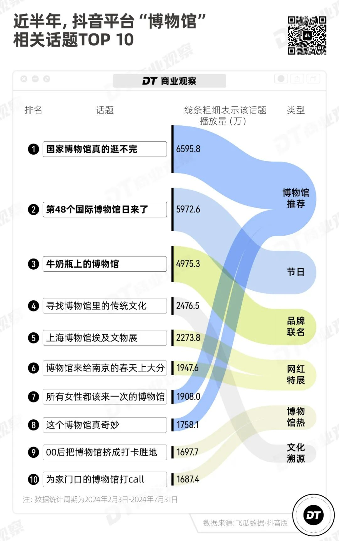 近半年抖音的热门话题榜显示,从“寻找博物馆里传统文化”的热门现象,到“为家门口博物馆打call”的接力,一波又一波讨论,让博物馆进入公众视野。