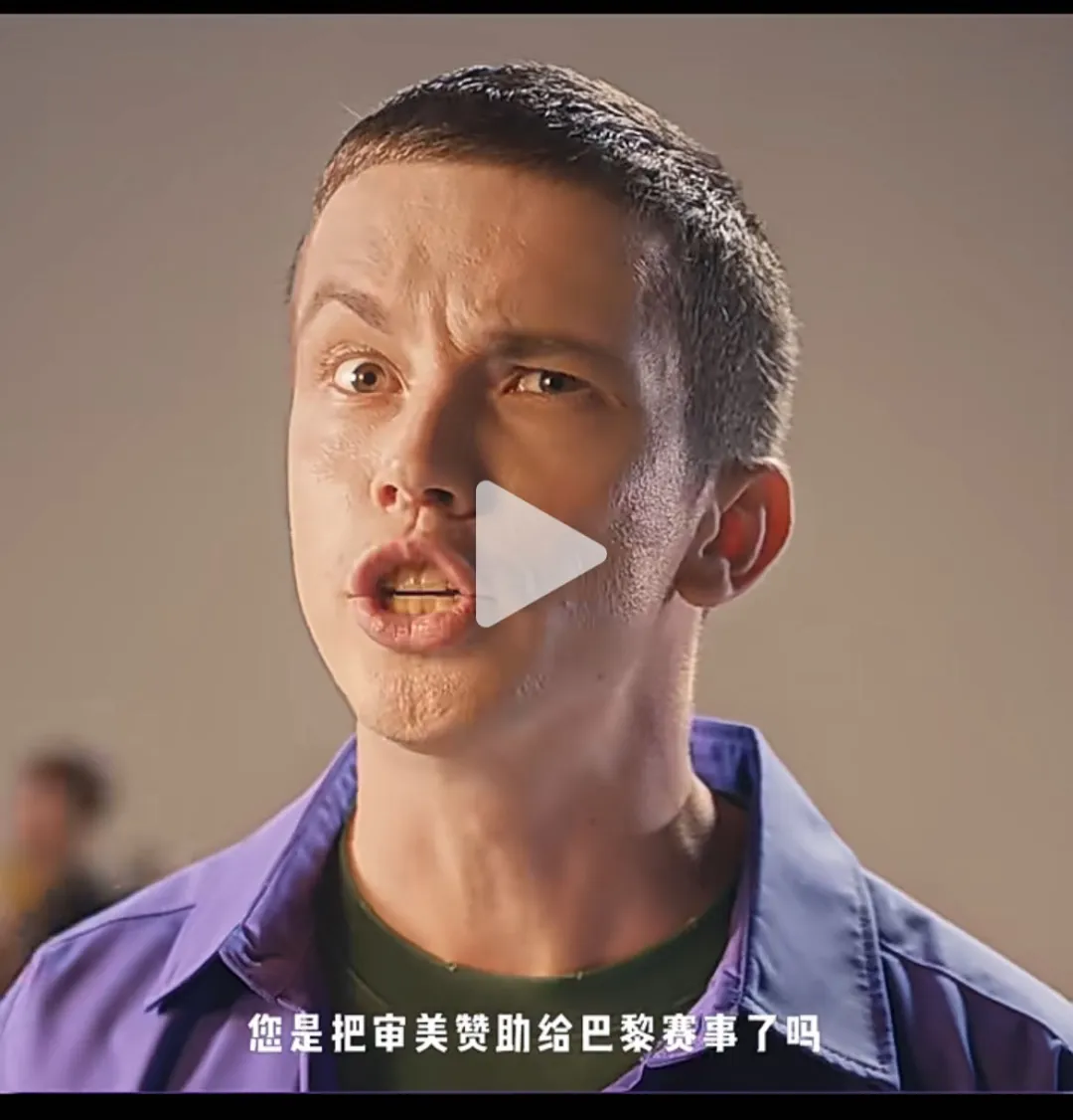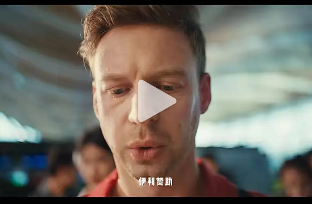 然后这个外国人重复说“巴黎logo,伊利赞助。”