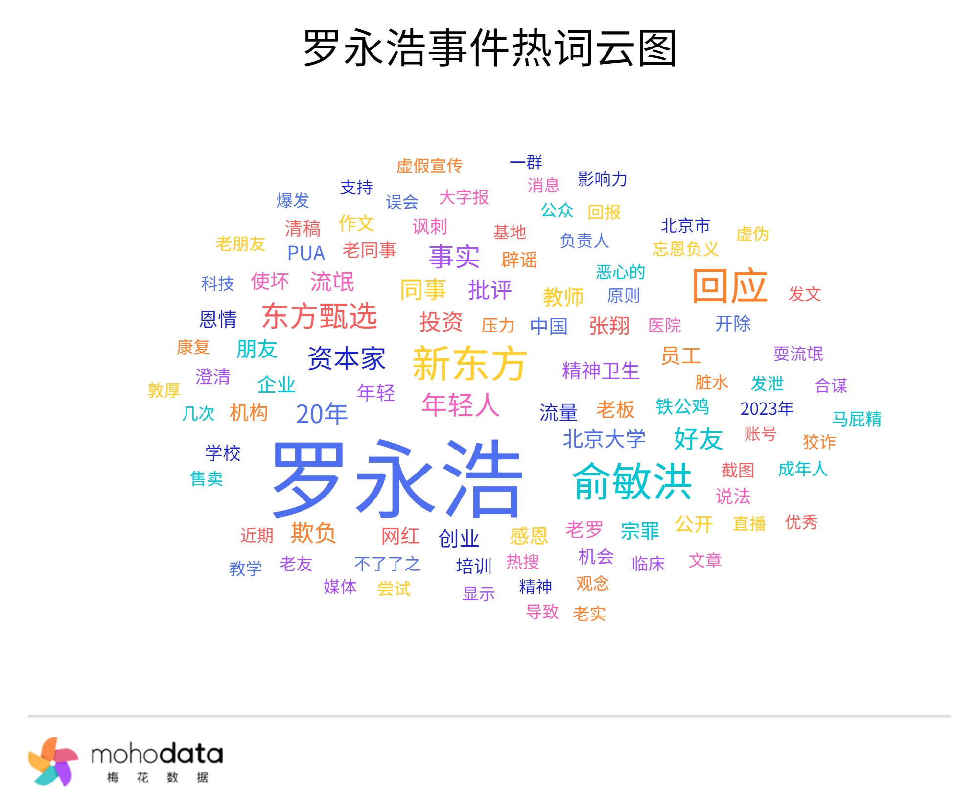 声量热词方面,热词云图如下所示,其中“道歉”“背离”“俞敏洪”“公开道歉”“投诉”等词汇排名较前。