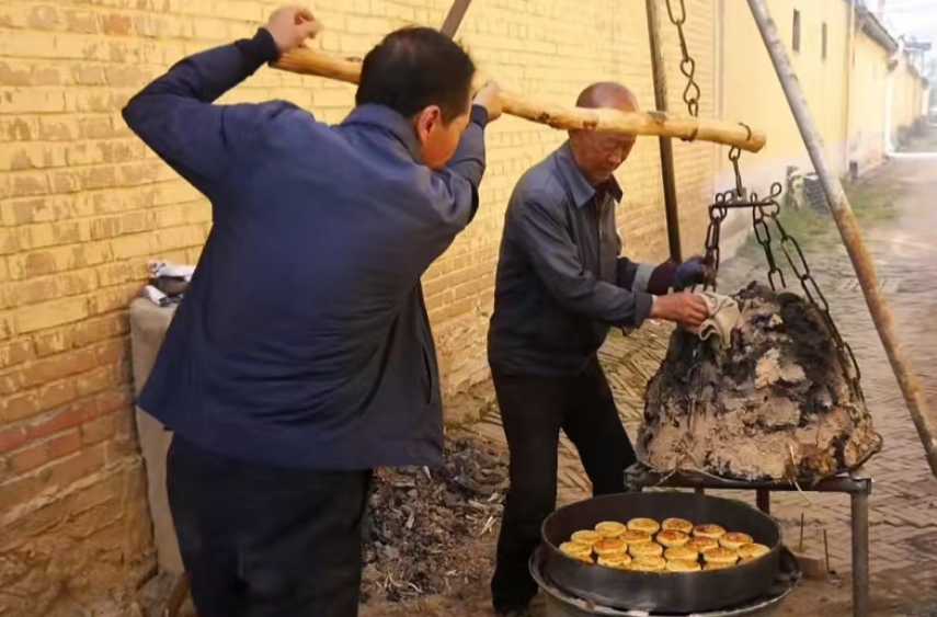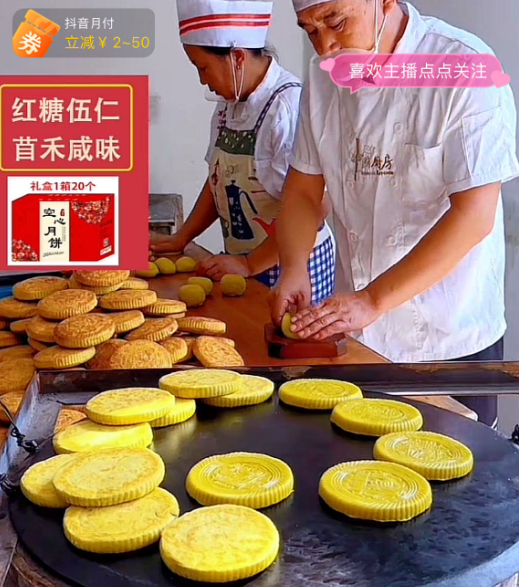 一些手艺人发现,粉丝们对月饼的传统制法感兴趣,就会在自己院子里专门拍摄用土炉鏊烤制月饼的过程,进行现场展示。