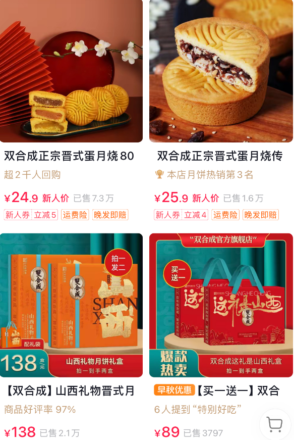 现在,双合成的月饼售卖到全国。今年月饼季,双合成旗下多家旗舰店同步直播,爆品更是多次卖到断货。